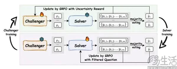 虽然目前已经有团队基于强化学习中的“自我博弈”(Self-Play)开始探索“无数据自我进化”,也就是AI给自己出题、自己解题、再从中学习,如此循环往复,来让AI变得更聪明。但问题是由于没有来自外部的“标准答案”,评估每一个自生成问题的难度和可解性都需要让大模型实际解答,整个过程就如同反复试错的穷举法,极其耗费时间和算力。
