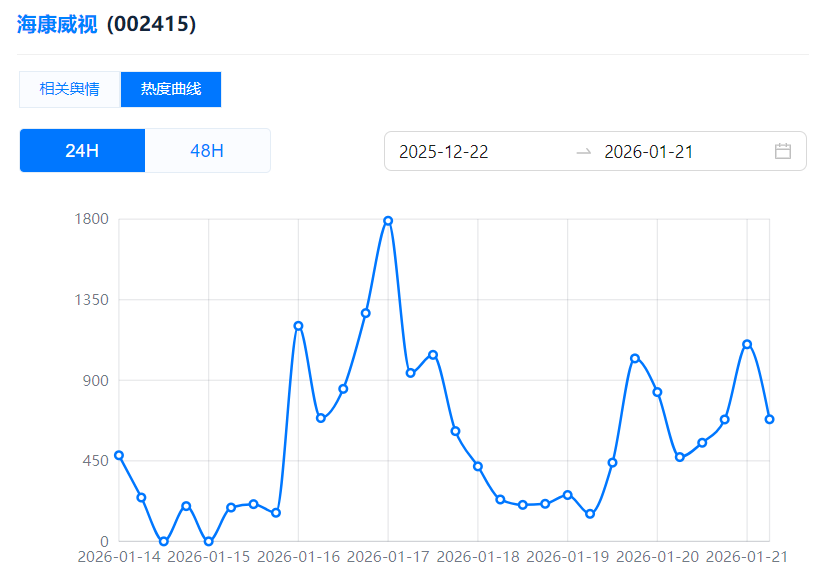1、【上市企业热度观测日志】1月21日:海康威视、寒武纪、瑞芯微占据热度前三甲