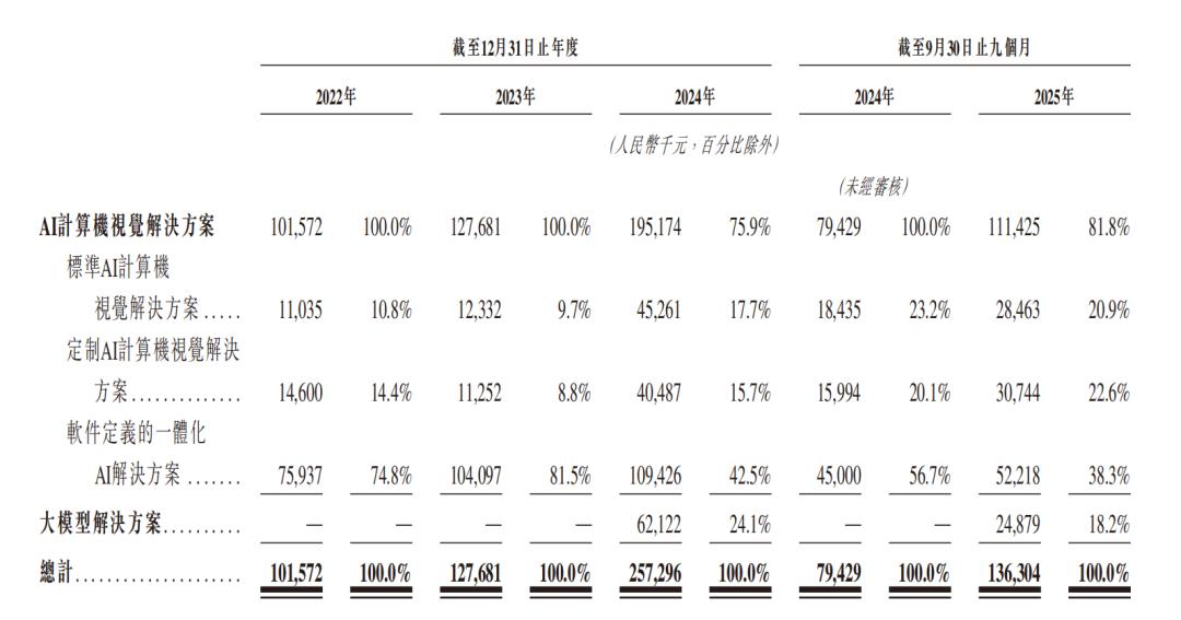 大模型解决方案在2024年及2025年前九个月的营收分别为0.14亿元、0.09亿元,毛利率分别为22.8%、35.6%。