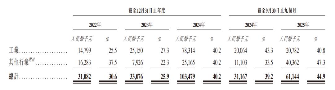 按行业划分,2022年、2023年、2024年全年及2025年前九个月,极视角在工业领域的毛利率分别为25.5%、27.3%、40.2%及40.8%;其他行业的毛利率分别为37.5%、22.3%、40.2%及47.3%。