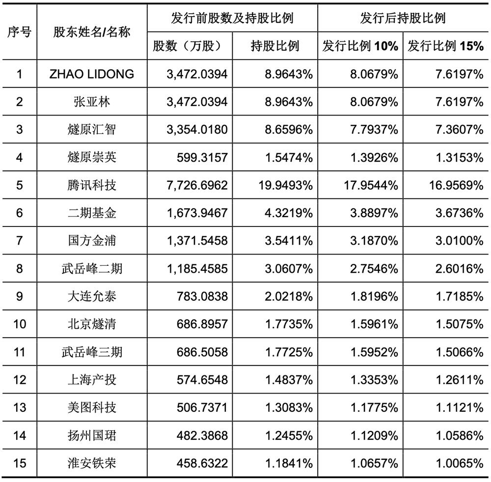 截至招股书签署日,燧原科技共有超百名股东,腾讯科技及其关联方苏州湃益、国家大基金二期、美图科技分别持股20.26%、4.32%、1.31%。