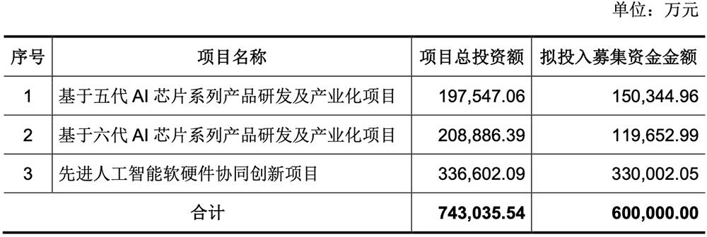 此次IPO,该公司拟募资60亿元,用于第五代和第六代云端AI芯片系列产品的研发和产业化。