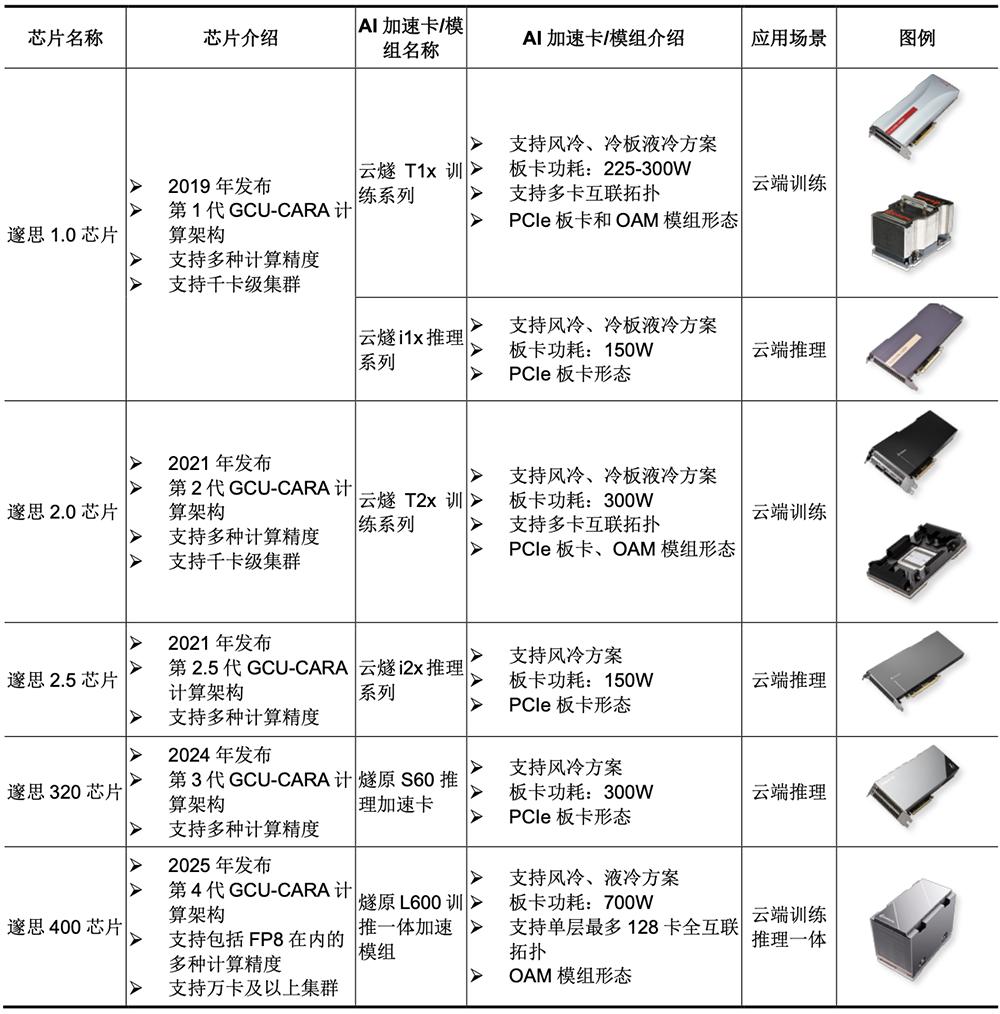 该公司已构建AI芯片、AI加速卡及模组、智算系统及集群和AI计算及编程软件平台的完整产品体系。