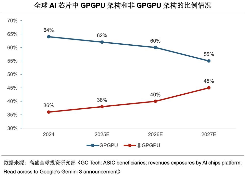 招股书显示,基于高盛全球投资研究部的模型预测,在AI服务器的AI芯片中非GPGPU芯片的出货占比将呈现明确上升趋势,预计将从2024年的36%,逐步增长至2027年的45%。