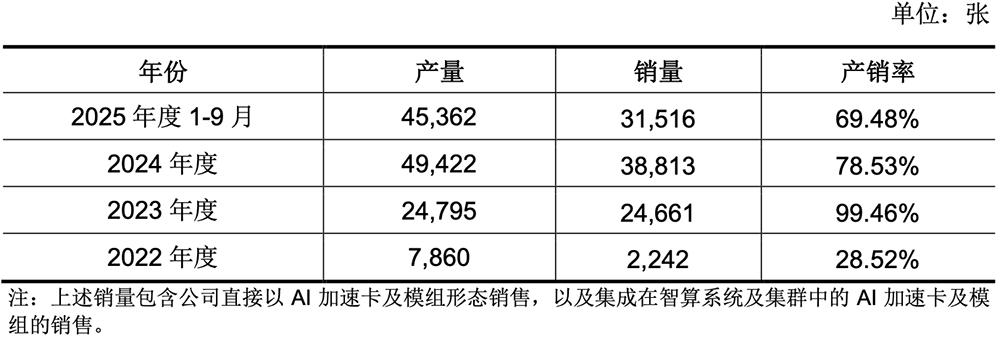 燧原科技AI加速卡及模组的产销量情况如下,2024年销量达到3.88万张。