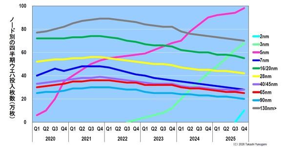 图11:台积电各节点季度晶圆投入量(2025年第四季度预测)。来源:Claus Aasholm,以及作者估算