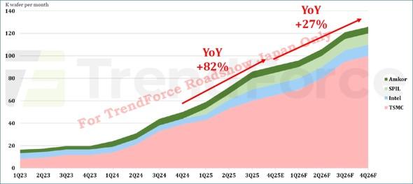 图 14:2.5D 封装容量趋势。来源:TrendForce