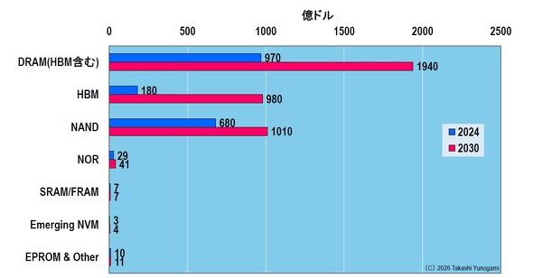 图8:存储器市场预测(2024 → 2030 年)来源:作者根据 Yole Group 的预测数据制作