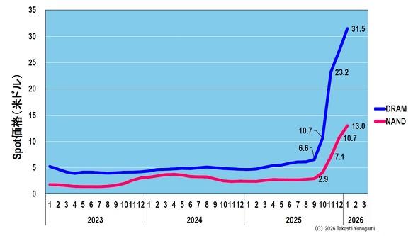图9:DRAM 和 NAND 现货价格上涨。来源:作者根据 TrendForce 数据制作