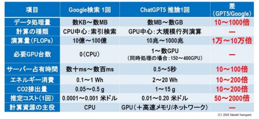 图3:谷歌搜索与 ChatGPT 5 算力及处理成本对比。