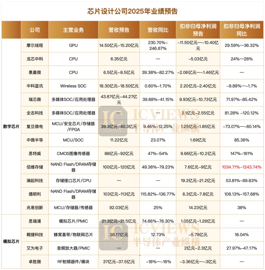 在本次统计的所有国产半导体公司中,佰维存储堪称最大赢家。其2025年扣非归母净利润同比增幅高达1034.71%-1243.74%,突破1000%的惊人增长幅度,在所有披露业绩的企业中遥遥领先。