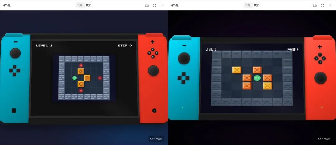 接下来,我又让K2.5 Thinking(下图左)和K2 Thinking(下图右)分别生成了一个Switch手柄: