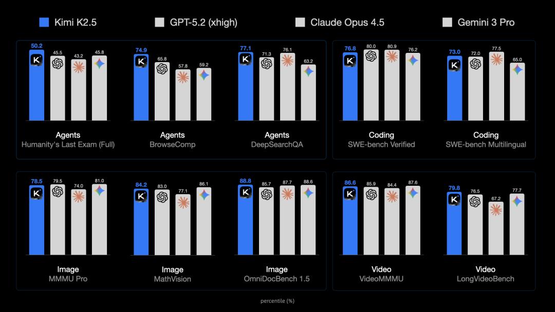 这是Moonshot AI新推出的最强Agentic模型Kimi K2.5,发布后就在某推上热度起飞。