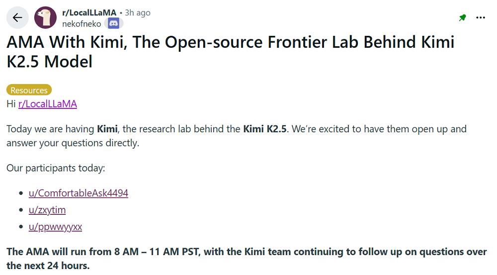 智东西1月29日报道,今天凌晨,月之暗面核心团队在社交媒体平台Reddit上举行了一场有问必答(AMA)活动。三位联合创始人杨植麟(CEO)、周昕宇(算法团队负责人)和吴育昕与全球网友从0点聊到3点,把许多关键问题都给聊透了,比如Kimi K2.5是否蒸馏自Claude、Kimi K3将带来的提升与改变,以及如何在快速迭代与长期基础研究之间取得平衡。