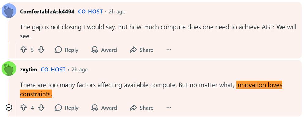 ▲杨植麟、周昕宇回应智东西关于算力储备的问题(图源:Reddit)