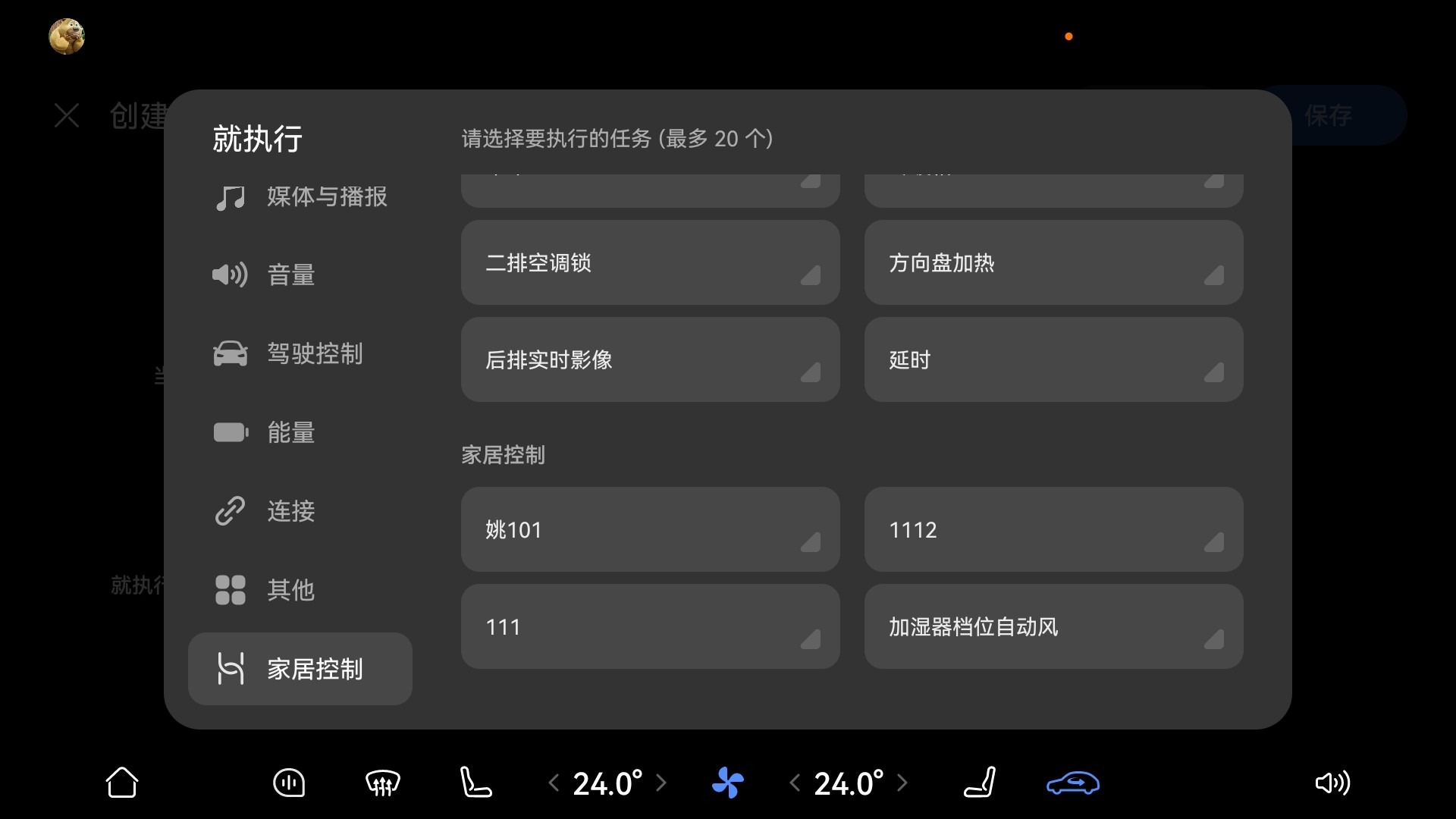 2. 鸿蒙智行 / AITO App > 爱车 > 智慧场景 > 自定义创建,添加条件后在任务中选择 QQ 音乐