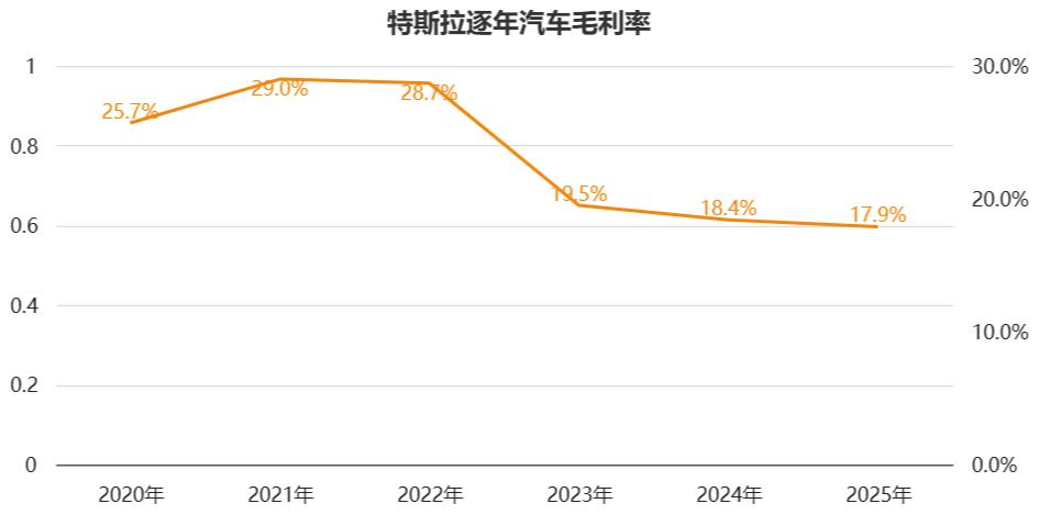2025年,特斯拉GAAP净利润37.94亿美元,相较2024年的71亿元下降46%,近乎腰斩;非GAAP净利润58.58亿美元,同比下降26%。