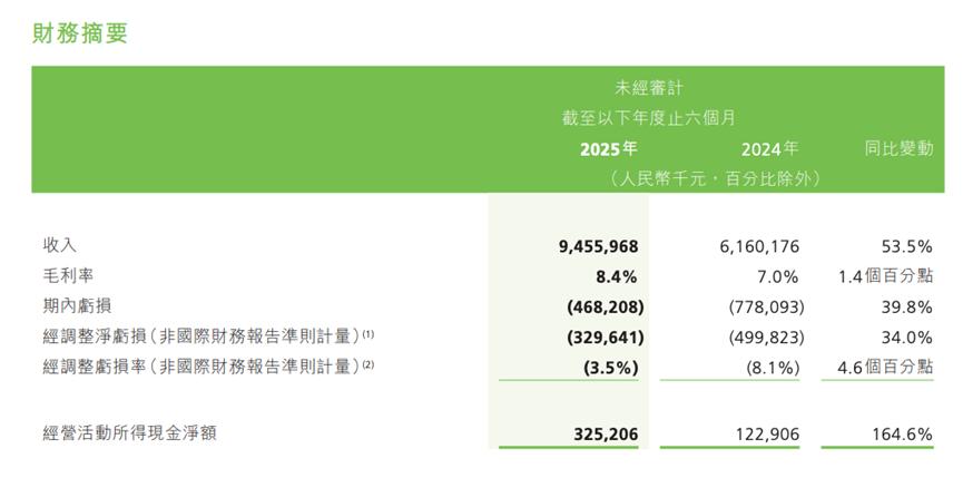 好在,2025年上半年,曹操出行实现了规模效应,毛利率同比上涨1.4个百分点至8.4%,并且一般及行政、研发等费用也得到了有力控制,最终亏损4.68亿元,同比收窄39.8%。