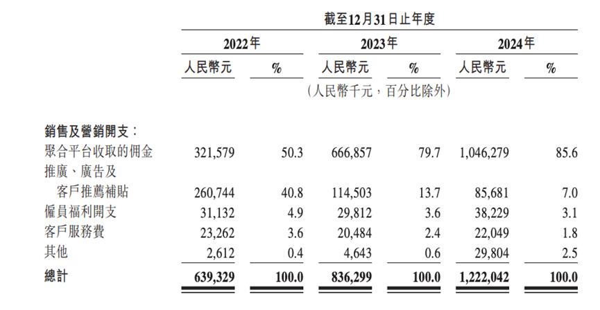 虽然背靠聚合平台,曹操出行的业务量有了保障,但需要注意的是,互联网平台并非“慈善家”,不会免费给曹操出行导流。招股书显示,2022年-2024年,曹操出行向聚合平台支付的佣金分别为3.22亿元、6.67亿元、10.46亿元,佣金率相当于聚合平台促成GTV的7.2%-7.5%。