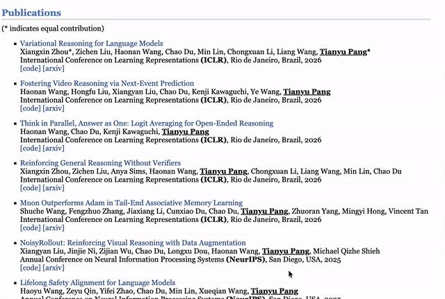 博士毕业后,庞天宇加入新加坡Sea人工智能实验室(Sea AI Lab),担任高级研究科学家。