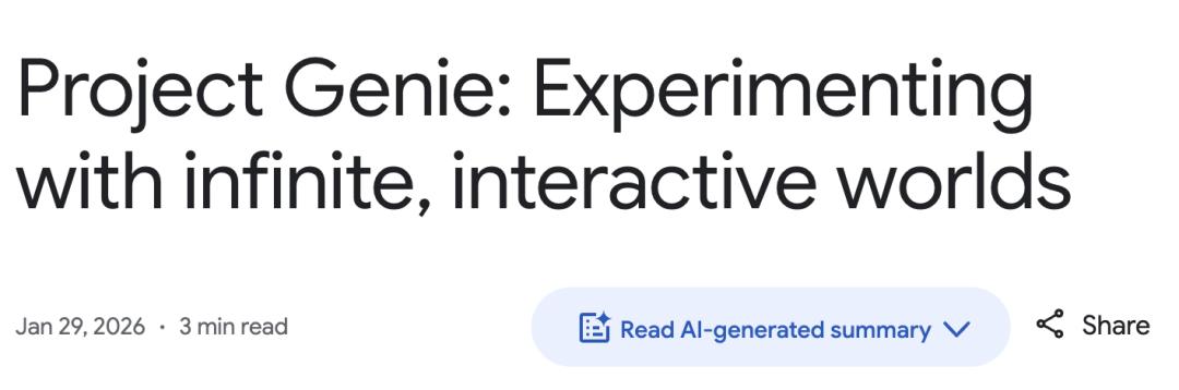 1月29日,谷歌发布Project Genie(基于Genie 3世界模型)。