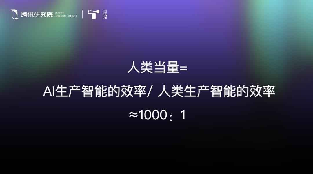 刚才司晓院长也讲到了人类当量。我们知道原子弹有当量,一枚原子弹相当于多少万吨 TNT。简单来说,人类当量,就是计算大模型的智力输出相当于多少人类。我估计一千倍不成问题。