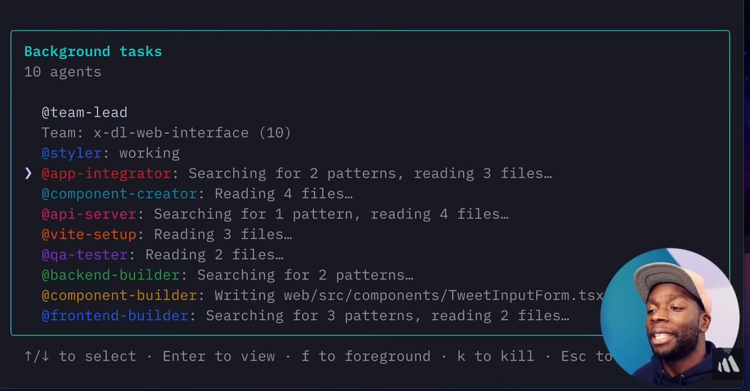 执行任务后,奇迹发生了!Claude自动创建了Team Leader、Front-end Builder、Backend Builder、Component Builder和QA Tester。