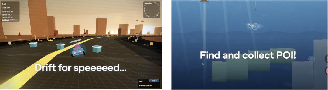 官方展示了两个Demo:一个赛车游戏、一个潜水游戏。还蛮有风格的。