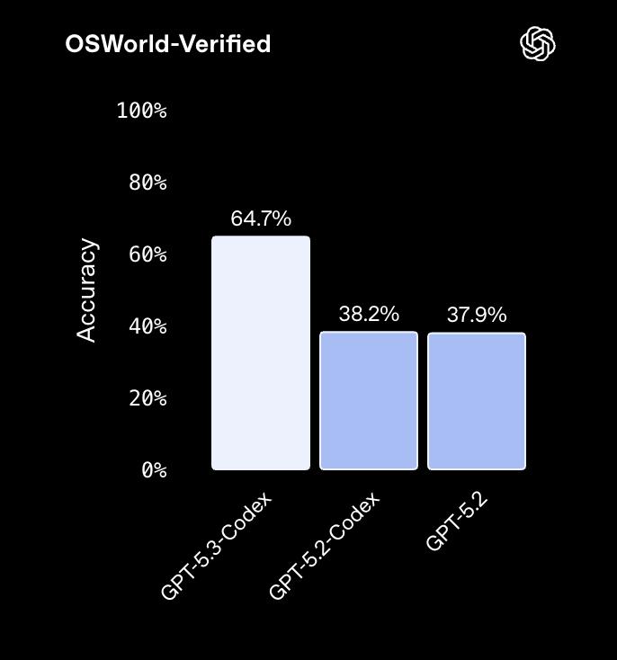 结果显示,GPT-5.3-Codex在计算机使用能力上,明显强于此前的GPT模型。