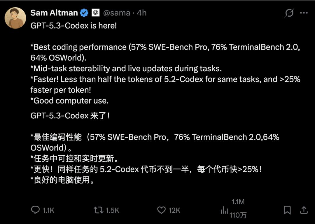 Claude Opus 4.6发布仅仅15分钟,OpenAI也甩出了自己最新最强编程模型——
