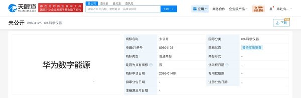 【CNMO科技消息】近日,华为技术有限公司在商标注册领域动作不断,引发了业内的广泛关注。据相关消息,该公司申请注册了多枚“华为能源”“华为数字能源”商标。这些商标的国际分类广泛,涵盖了科学仪器、运输工具、机械设备等多个重要领域。目前,这些商标的状态均为等待实质审查。