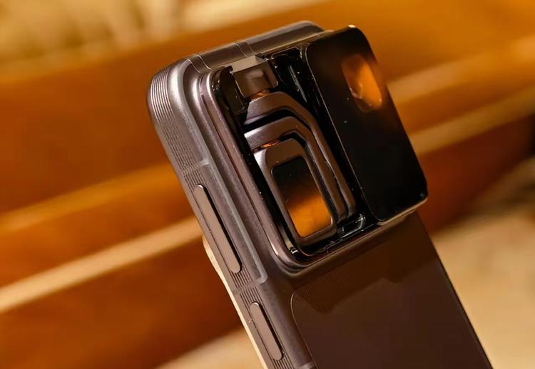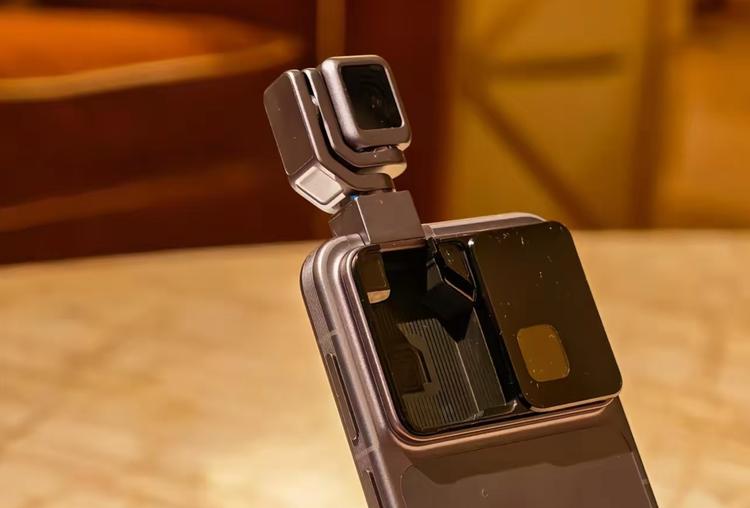 这不是一款普通的手机。它的摄像头模组不再是固定的,而是一个内置的机械臂云台。当你需要拍摄时,摄像头会从机身背部“弹起”并旋转,自带三轴物理防抖,甚至可以自动追踪你的脸进行 360 度拍摄。