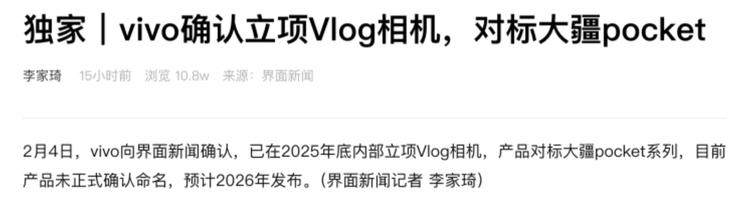 根据目前确认的供应链消息,vivo 已经在 2025 年底正式立项了一款独立的 Vlog 相机产品,内部代号尚未曝光,但目标极其明确——直指大疆 Pocket 系列。