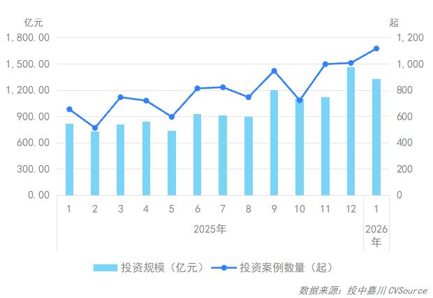 图5:2025年1月-2026年1月中国VC/PE市场投资情况
