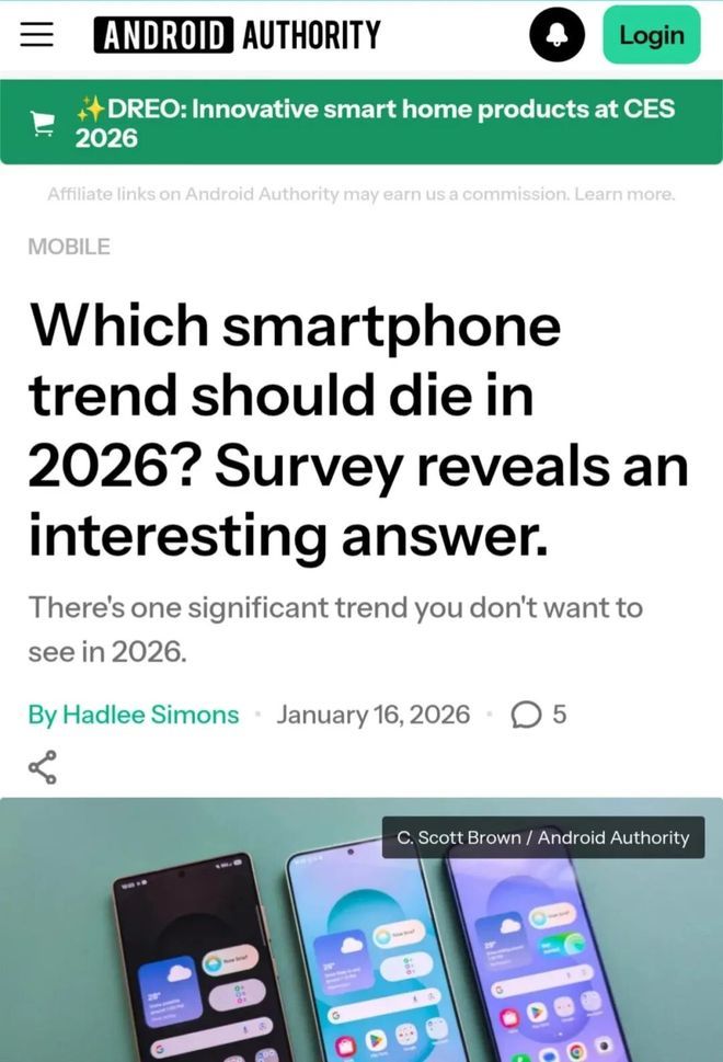 这不最近托尼看到一家海外科技媒体 Android Authority 搞了个投票,有超过 4500 个读者选出了:“ 2026 年最该消失的手机趋势 ”,直接给托尼看爽了,这哪儿是什么投票啊,这分明是我嘴替嘛。