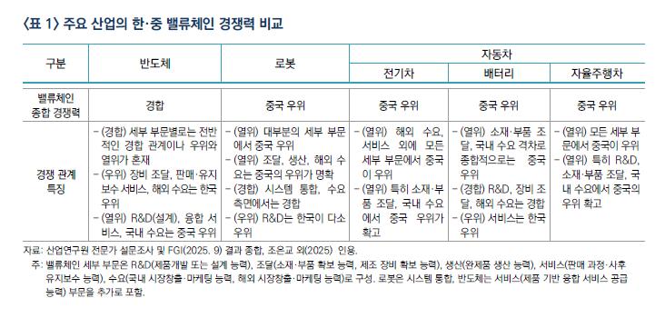 中韩产业竞争正转向尖端制造领域,两国的产业分工结构已经从垂直分工转向水平竞争关系,过去韩国将中国用作生产基地、供应链采购基地的战略已不再有效。中国超越传统产业,在电动汽车、机器人、半导体等核心尖端产业中,通过国家主导的大规模投资和生态系统扩张,威胁着韩国的制造地位。