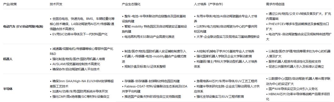 KIET提出的各产业应对策略(图源:KIET;翻译:DeepSeek)