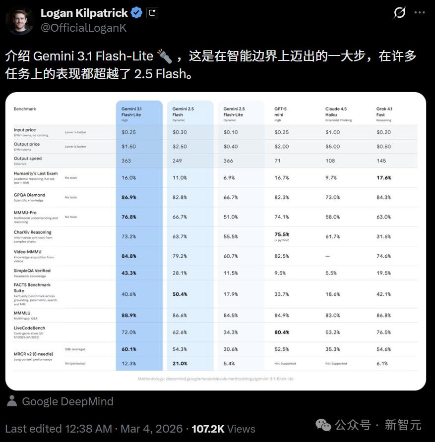 刚刚,Gemini 3.1 Flash-Lite正式上线!