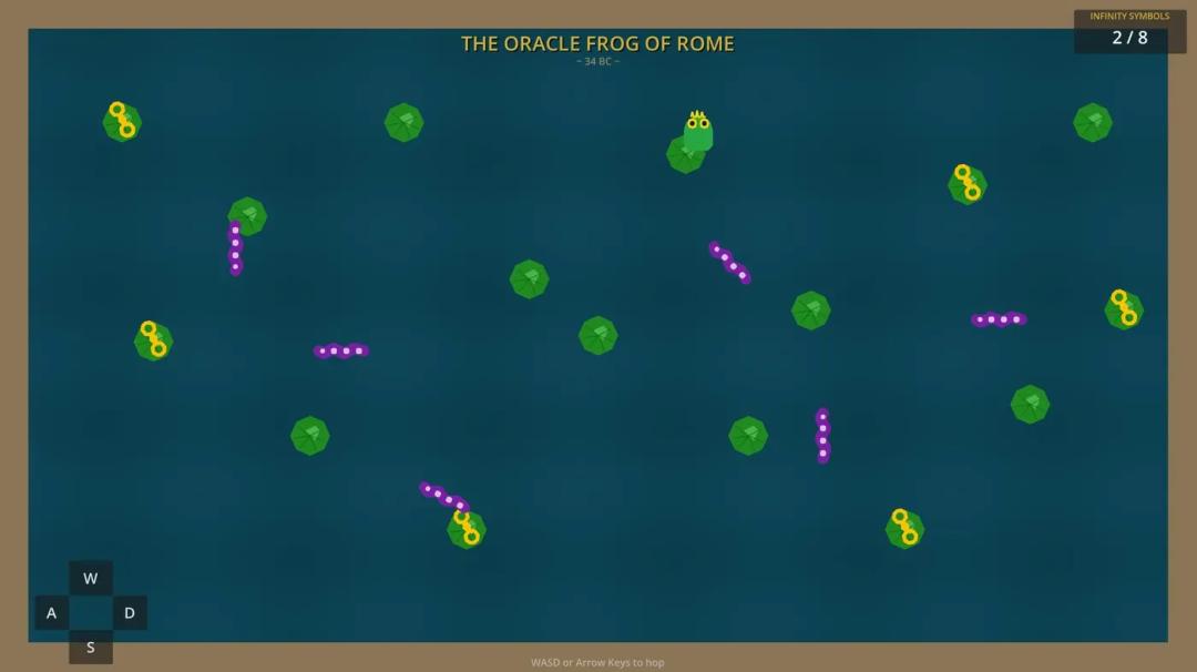 《The Oracle Frog of Rome》,躲避类游戏,玩家要躲避克拉肯的触手,收集黄金链条束缚它,游戏里的神谕青蛙后期还会变成国王;