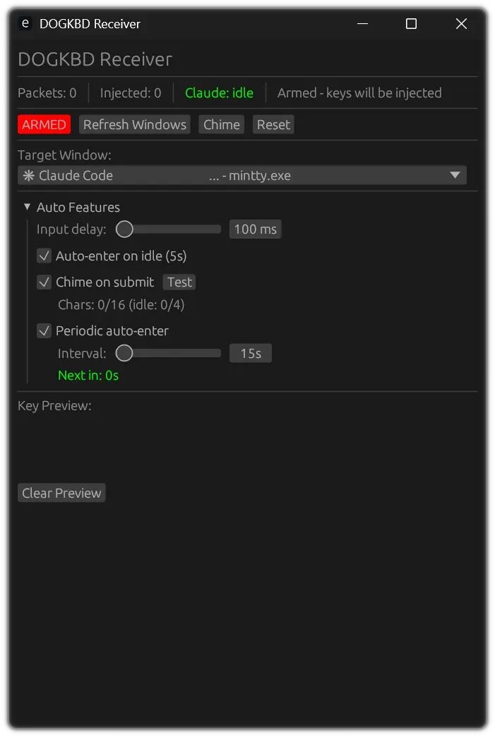 DogKeyboard 应用程序:用 Rust 语言开发的,核心作用是“过滤乱码”——把 Momo 敲的没用的特殊按键(比如 Esc、Tab)去掉,只保留有效按键,再传给 Claude Code。