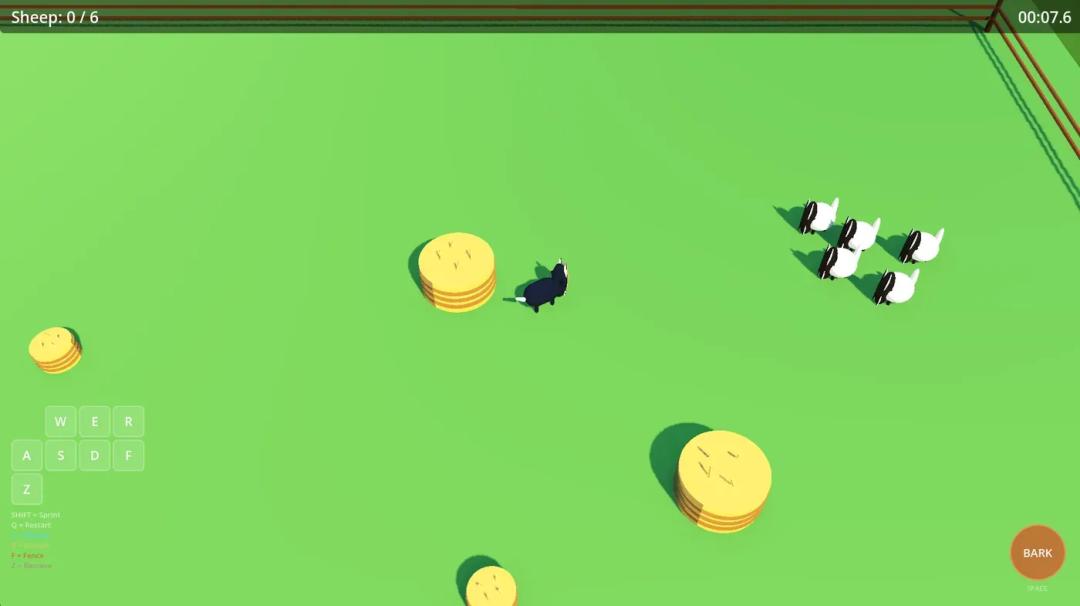 《Ewe Heard Me!》,是一款放羊游戏。玩家用隐身和吠叫,把羊赶进羊圈,但这款游戏有 bug,前两只羊进圈后会停下,阻挡其他羊,后来 Caleb Leak 在提示语和工具中增加了对可赢性检查的要求。