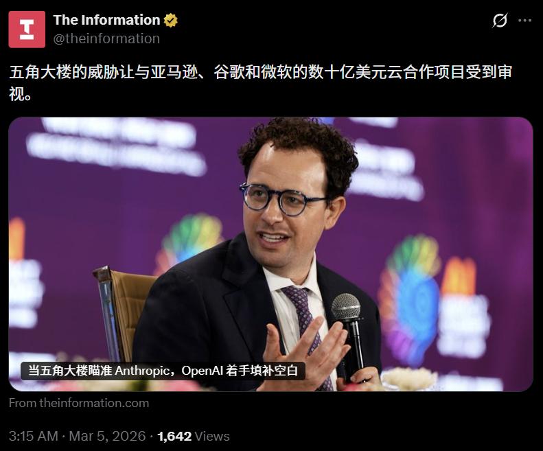 不仅仅是国防科技公司合作深受影响,就连Anthropic与科技大厂的合作或将被「切割」。