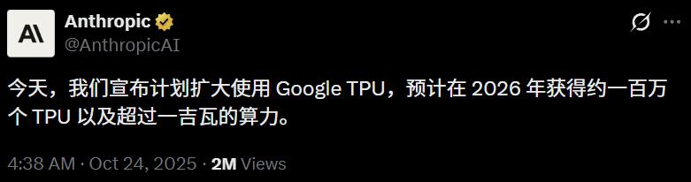 去年曾曝出,Anthropic豪掷250亿美元,要买下近100万块TPU v7芯片。