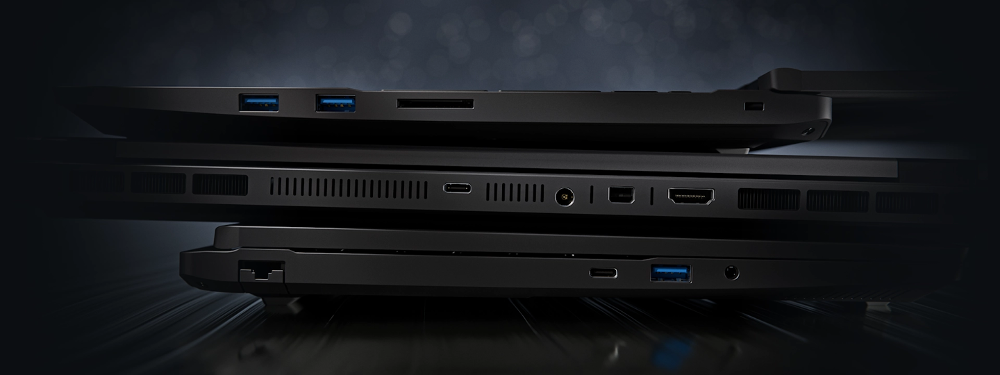 该笔记本电脑预装无线网卡,提供 1 个全功能 USB-C 40Gbps、1 个全功能 USB-C 10Gbps、3 个 USB-A 5Gbps、1 个 1GbE RJ45、1 个 Mini DisplayPort 2.1、1 个 HDMI 2.1、1 个 UHS-II SD 读卡器、1 个音频插孔。