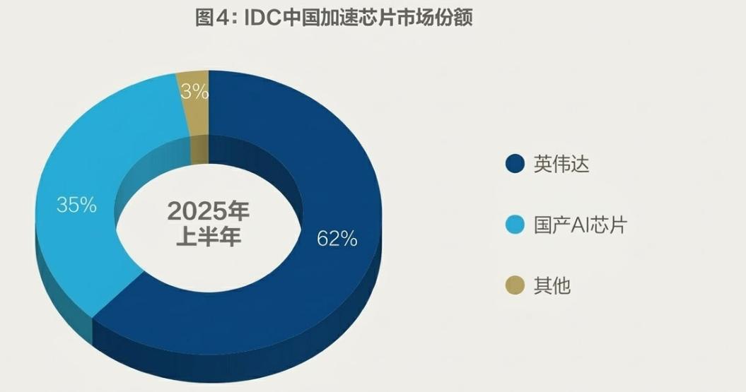 据 IDC 2025 年的市场调研,国产 AI 芯片在英伟达的垄断下增长到了 35% 左右的市场份额,早已不再是 PPT 里的备胎,而是真的能买来干活的主力。