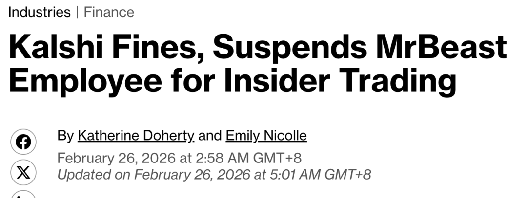 而他的一位视频剪辑师,利用自己能提前看到视频后台数据(比如发布时间、内容方向)的「职务便利」,在Kalshi上精准下注了大约4000美元。平台的监控系统发现他的交易成功率高得离谱——在极低赔率的盘口上几乎「百发百中」,统计学上几乎不可能是巧合。