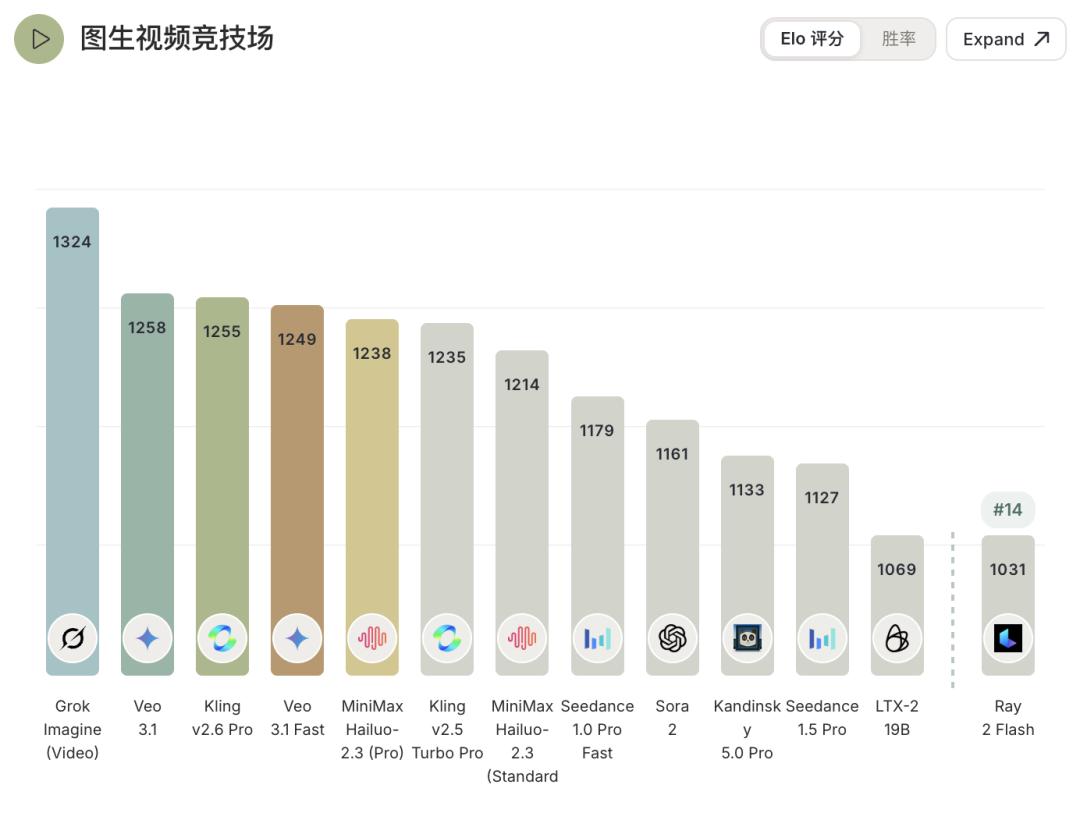 图像转视频:Elo 1298,击败谷歌的Veo 3.1、中国的Kling和OpenAI的Sora。这里是把静态图片「动」起来,比如一张风景照变成风吹树摇的动态场景。