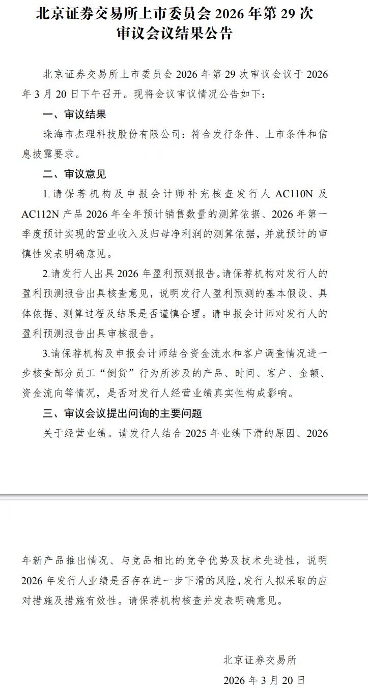 3月20日,北京证券交易所上市委员会2026年第29次审议会议结果揭晓,珠海市杰理科技股份有限公司(以下简称“杰理科技”)北交所IPO成功过会。这家专注于系统级芯片(SoC)的集成电路设计企业,即将迈入资本市场新征程。