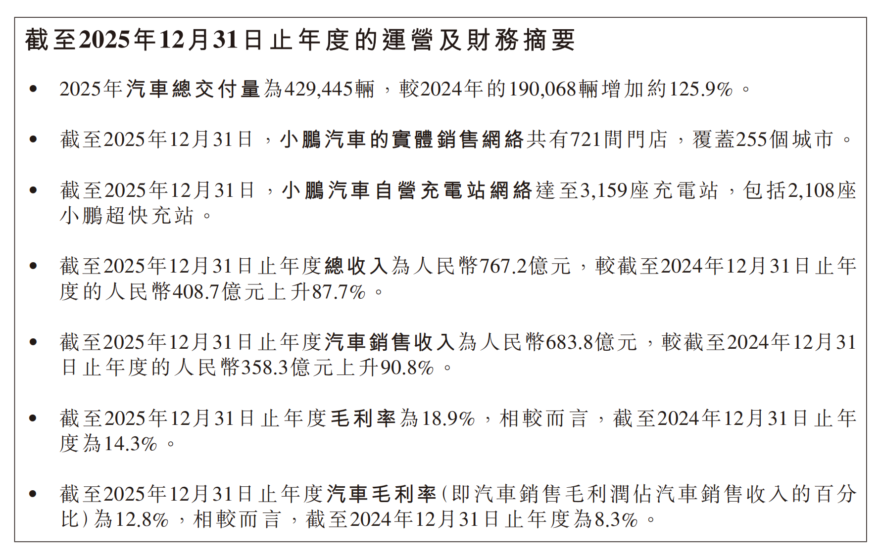 5.小鹏汽车2025年全年总营收767.2亿元,同比增长87.7%