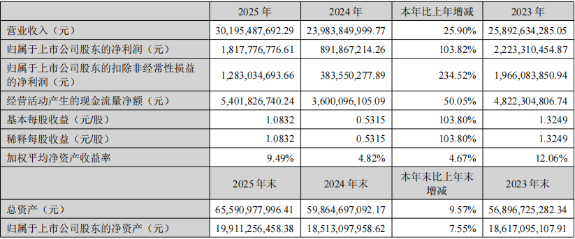 4.中材科技2025年实现营收302亿元,净利润同比增长103.82%